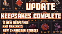 The keepsake system is now complete! Yay! What does that mean exactly, though? Well it means the addition of 19 unique keepsakes and variants to be able to mix and match to create your perfect build w...